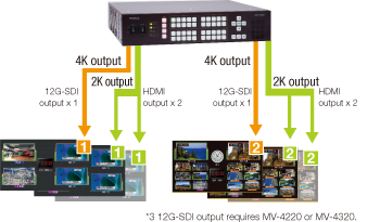 支援4K輸入/輸出*3 (12G-SDI or 3G-SDI)