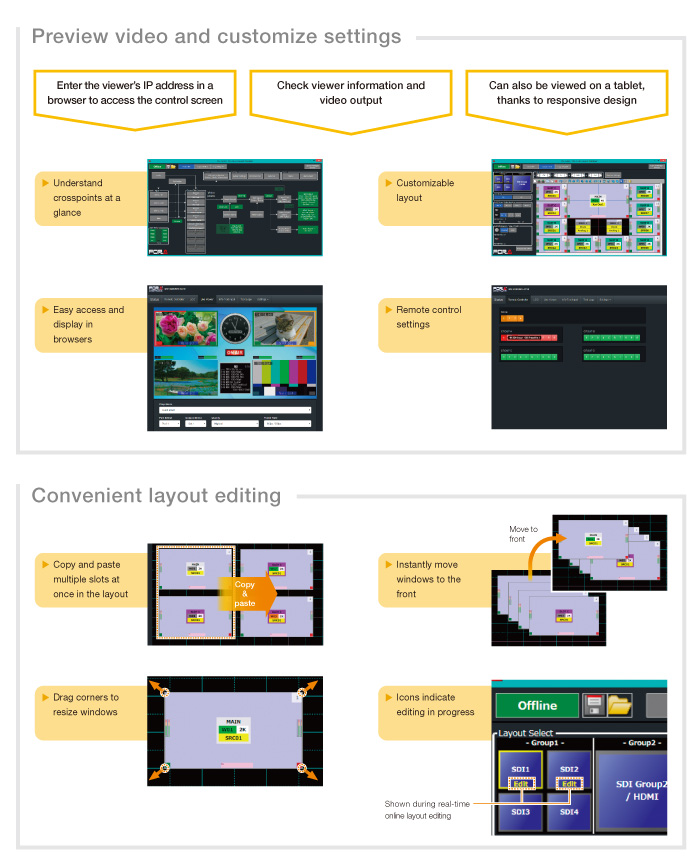 最大68輸入,114畫面/8個顯示幕輸出,支援多種輸入格式,包含12G-SDI,簡化4K工作流程,自由編輯監看畫面佈局