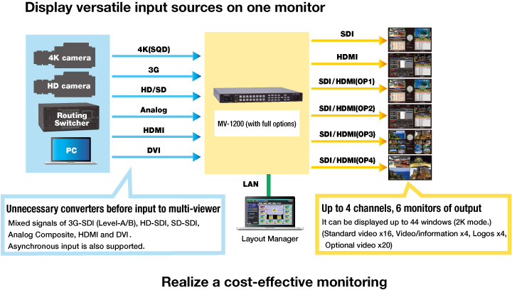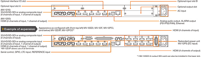 Use of MV-12EXP option allows both SDI/HDMI input and output.