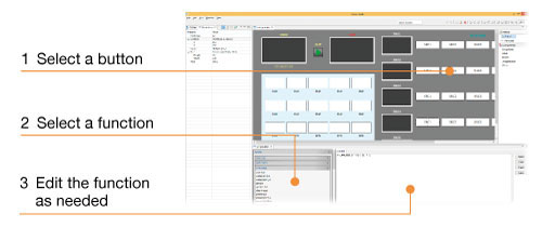 Customize button functions using JavaScript, and edit actions triggered by changes in status of connected device.